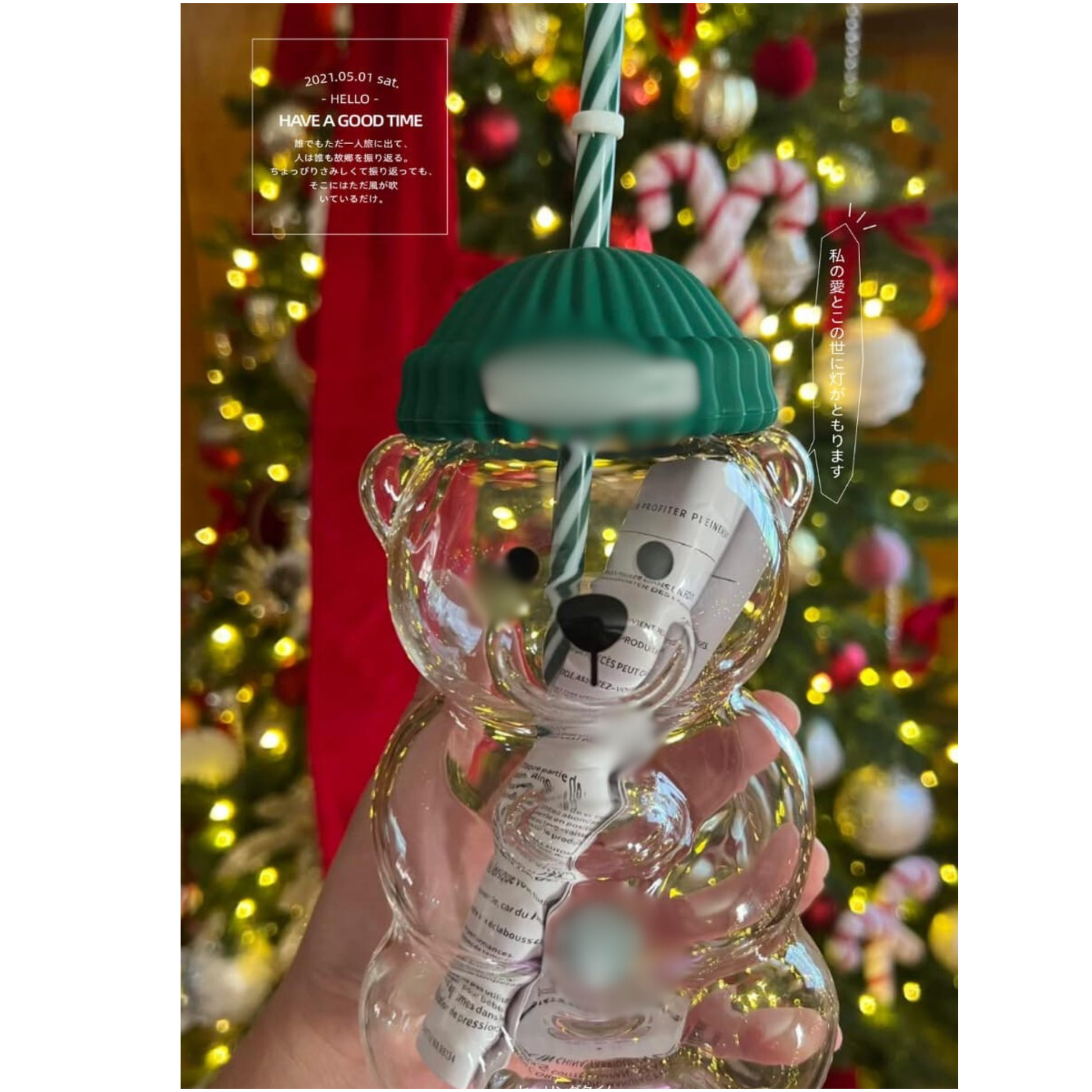Coffee Style Inspired Bear Glass Tumbler 2025 with Knit Beanie Lid & Straw | Clear Teddy Bear Iced Coffee Cup | 20oz Holiday Gift